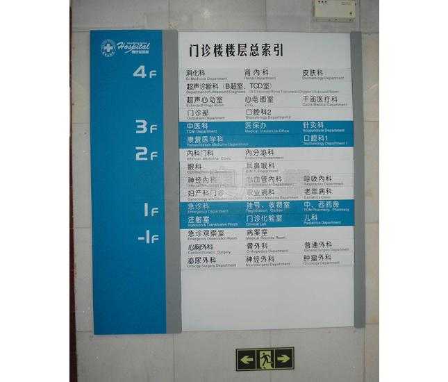 服務內容:醫(yī)院樓宇標識,道路指引標識,醫(yī)院戶外總圖,樓層索引,平面分布圖,專家介紹欄,宣傳欄,功能室,樓層號,科室名稱牌等