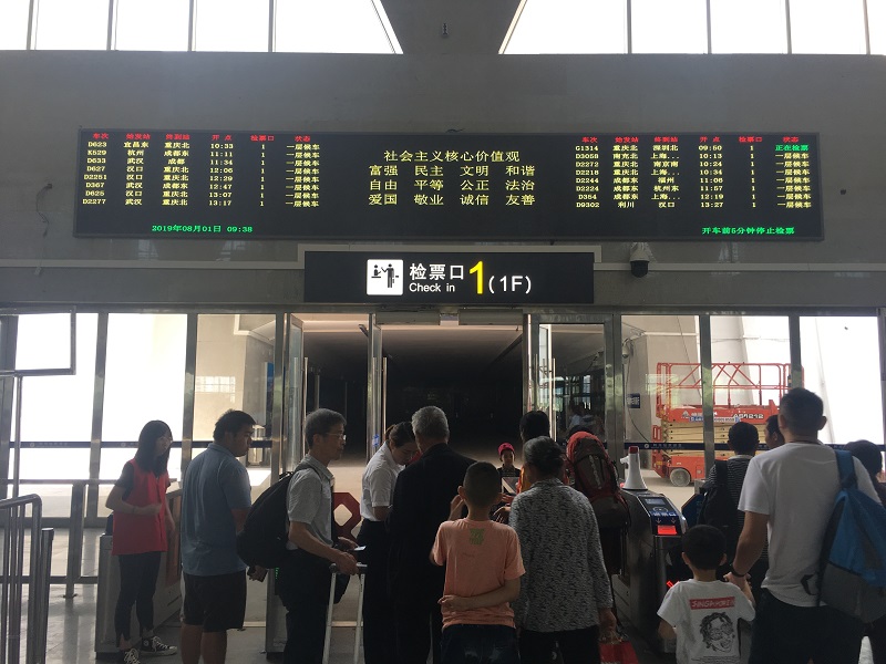 客運車站進(jìn)站檢票區(qū)靜態(tài)標(biāo)識為候車旅客提供檢票口標(biāo)識信息服務(wù),引導(dǎo)旅客進(jìn)入正確的檢票口乘車。進(jìn)站檢票區(qū)靜態(tài)標(biāo)識應(yīng)設(shè)置檢票口位置、兒童標(biāo)高線、“一米線”等標(biāo)識,引導(dǎo)旅客有序檢票乘車。
