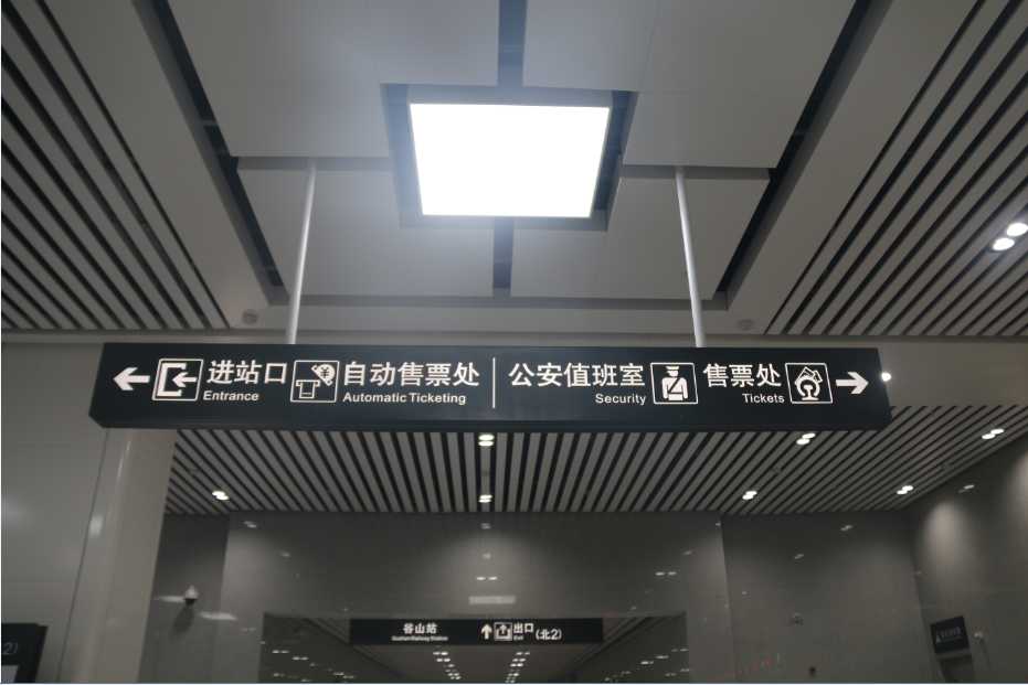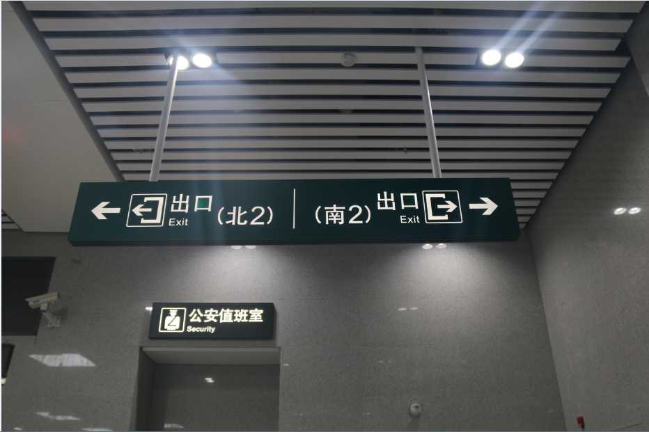 導(dǎo)向標(biāo)識系統(tǒng)的第一原則,為引導(dǎo)旅客到達(dá)指定目的地的作用。在大量客流匯集的站廳與出入口的位置,標(biāo)識的設(shè)置安全性顯得尤為重要。為確保旅客的人身安全與行車車輛安全,導(dǎo)向標(biāo)識的設(shè)計必須具備材料安全、結(jié)構(gòu)安全、安裝安全、消防安全、視覺安全于一體才能實現(xiàn)人性化的設(shè)計理念。